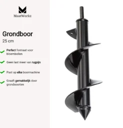 MaatWorkz – Grondboor – 25 CM – Boormachine – Bollenplanter – Moestuin – Palenboor – Boor – Tuin
