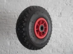 Robuust wiel met luchtband, geschikt diverse steekwagens en bolderkarren met een asdiameter van 20 mm en een bandmaat van 3.00-4. Deze bandmaat houdt in dat het wiel een diameter van 26 cm en een dikte van 8.5 cm heeft. Het wiel is dankzij de luchtband geluids- en trilling-dempend en zeer geschikt voor gebruik op een onregelmatige ondergrond. Laat je niet tegenhouden door een lekke band. Met dit reservewiel kun je snel weer verder met verhuizen of klussen !