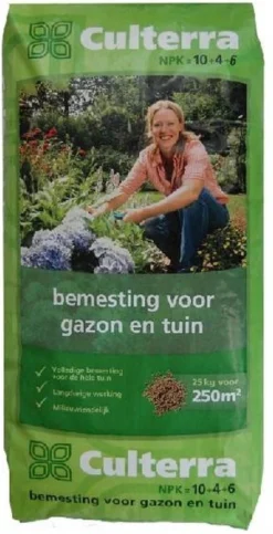 Culterra is de perfecte bemesting voor al uw tuin- en kuipplanten. Het grote voordeel van Culterra is dat het (na besproeiing of regenval) direct beschikbaar komt voor de planten. Culterra is een meststof in korrelvorm. Deze korrels zorgen ervoor dat u de meststof makkelijk door uw border kunt verdelen.