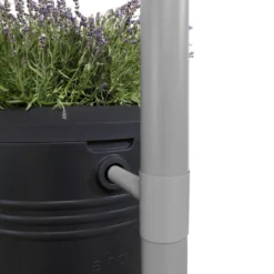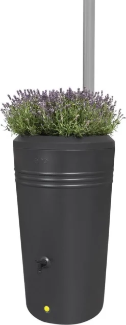 Een regenachtige dag wordt ineens een stuk minder erg door onze green basics regenton! Met een inhoud van 200 liter, kun jij voortaan lekker veel regenwater opvangen én hergebruiken voor het water geven van je planten, als drinkwater voor je huisdieren of bij het zemen van je ramen. Om het nog milieuvriendelijker te maken, is onze green basics regenton gemaakt van gerecycled plastic en met energie van onze eigen windmolen. Een win-win situatie dus! Onze green basics regenton kan makkelijk worden aangesloten op een regenpijp met behulp van een vulpijp (niet inbegrepen). De regenton vult zich automatisch tijdens een regenbui. Wanneer de ton vol is, loopt het overtollige water gewoon weer via de afvoer weg. De kraan is gepositioneerd op een ideale hoogte, waardoor je er gemakkelijk een gieter onder plaatst. Je hebt dus geen standaard of verhoging nodig. Vergeet niet het kraantje open te zetten tijdens een vorstperiode! Op de bovenzijde van deze regenton zit een speciale plantenbak. Fleur de regenton op met bloemen of planten en maak van deze green basics regenton gelijk een eyecatcher in je tuin!