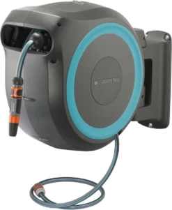 - Dankzij de wandslangenbox heeft u de tuinslang en accessoires altijd bij de hand. Sproeiers, tuinspuiten en wasborstels kunnen eenvoudig aan de muurbeugel worden opgehangen en opgeborgen.