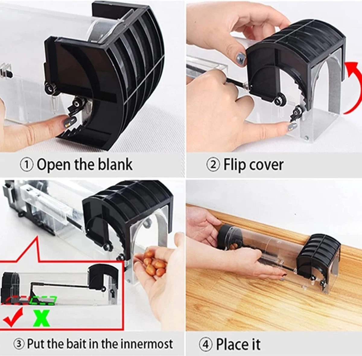 4. Hoogwaardige en afhankelijke, goede ABS Transparant Plastic betekent Trap is gemakkelijk gevolgd. Metalen deur is meer stevig dat de muis moeilijk doorheen is, het kan ook opnieuw worden gebruikt ..