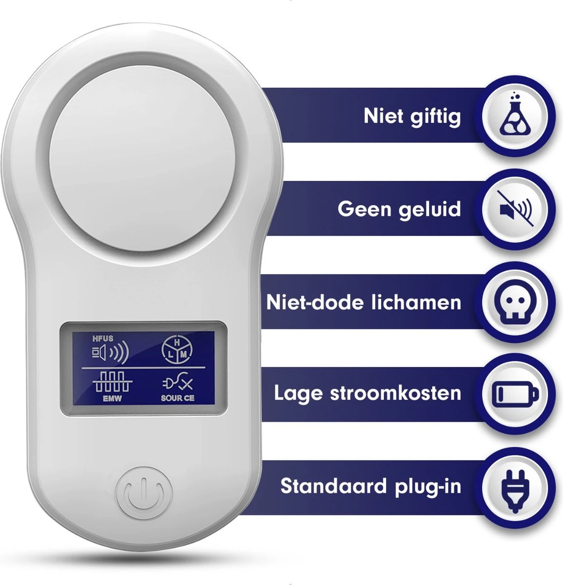 Een veilige manier om ongedierte in huis te bestrijden. Zeer geschikt voor een oppervlakte van 80 tot 120 vierkante meter. Door de 65Khz geluidsgolven die mensen niet kunnen horen, zorgt ultrasone technologie ervoor dat alle ongedierte uit je huis verdwijnt! U hoeft alleen de bestrijder in het stopcontact te steken en de rest van het werk wordt door de bestrijder gedaan.