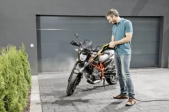 - Toepassing: voor de reiniging van tuin-, terras-, balkonmeubilair, hekken en kleine tuinpaadjes of tuintegels, motoren en scooters, kleine auto’s, buitentrappen en grotere tuinpaden, middelgrote auto’s en stationcars, tuinmuurtjes en stenen muurtjes, campers en SUV’s