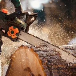 De kettingzaag heeft een goede kwaliteit ketting en deze wordt door een sterke metalen versnellingsbak versneld tot 16m/s, wat zorgt voor uitstekende zaagprestaties. Daarnaast beschikt de kettingzaag over een gereedschapsvrije, geïntegreerde snelspanner, automatische kettingsmering en een geïntegreerde terugslagrem, die razendsnel reageert. Bovendien kan dankzij de kapgreep ook horizontaal comfortabel gezaagd worden.