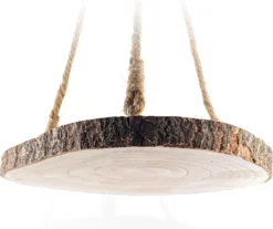 Deze houten plant en decoratie hanger boomschijf is leuk voor binnen en buiten. Hang hem op aan je veranda of balkon met planten of bloemetjes. Geef de decoratie in je ruimte een prominente plaats. Je kunt de hangplank ook ook vullen met kruidenpotjes en voorraadpotten en hang ‘m op in de keuken. Heel erg veelzijdig en een echt natuurproduct! Door de handige lus in het juten koord is de boomstam schijf eenvoudig en overal te monteren. Het robuuste hout van een stam en schors geeft de planthanger een stoer en vooral natuurlijke uitstraling. De afmeting is minimaal 35cm in diameter. Doordat dit een uit de natuur vervaardigde plant hanger is, kan het product qua boomschors iets afwijken van de afbeelding.