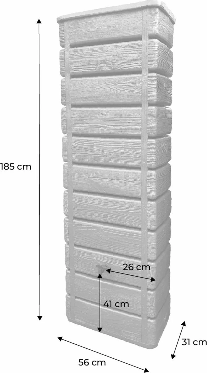 Met deze regenton met een capaciteit van 300L kunt u regenwater opvangen voor het onderhoud van uw tuin. Zodra de muurtank vol is, kunt u deze met het meegeleverde deksel sluiten. Het is mogelijk om de regenton aan te sluiten op de dakgoot met de bijgeleverde aansluiting. De kraan maakt het eenvoudig om het benodigde water te doseren. Zijn blaasgegoten imitatie hout-look geeft een zeer natuurlijke uitstraling aan uw tuin.