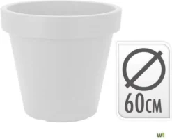 | Verpakkingsinhoud | 1x witte kunststof bloempot 60 cm doorsnede – Hoogte 52 cm |
