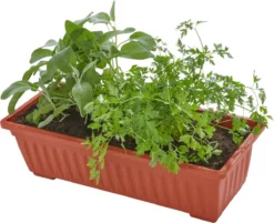 - Buitenafmetingen plantenbakken (BxDxH): ca. 49 x 20,5 x 14 cm