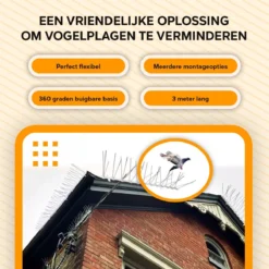 Ben je ook klaar met verschillende soorten vogels die alles onder poepen en veel overlast veroorzaken rondom je huis? Dit is vanaf nu verleden tijd met de roestvrijstalen vogelpinnen van TIOF. De duivenpinnen zijn reeds voorgemonteerd en daardoor direct klaar voor gebruik. Met een lengte van totaal 3 meter is dit de ultieme duivenverjager.