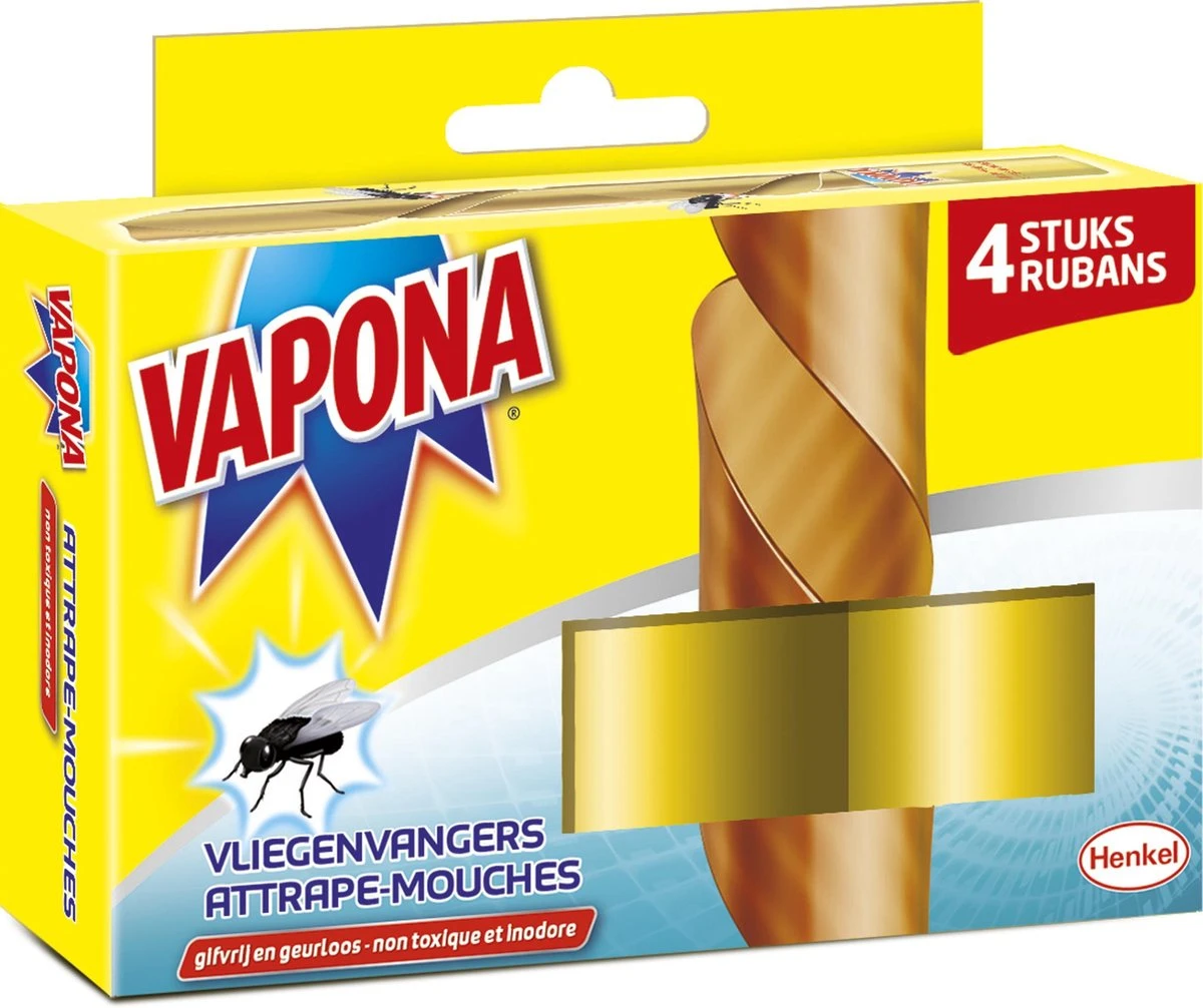 - De Vapona Vliegenvangers zijn uiterst doeltreffend doordat het vliegen vangt doordat de vliegen blijven plakken aan de kleefstroken. Zo ben je snel vliegvrij