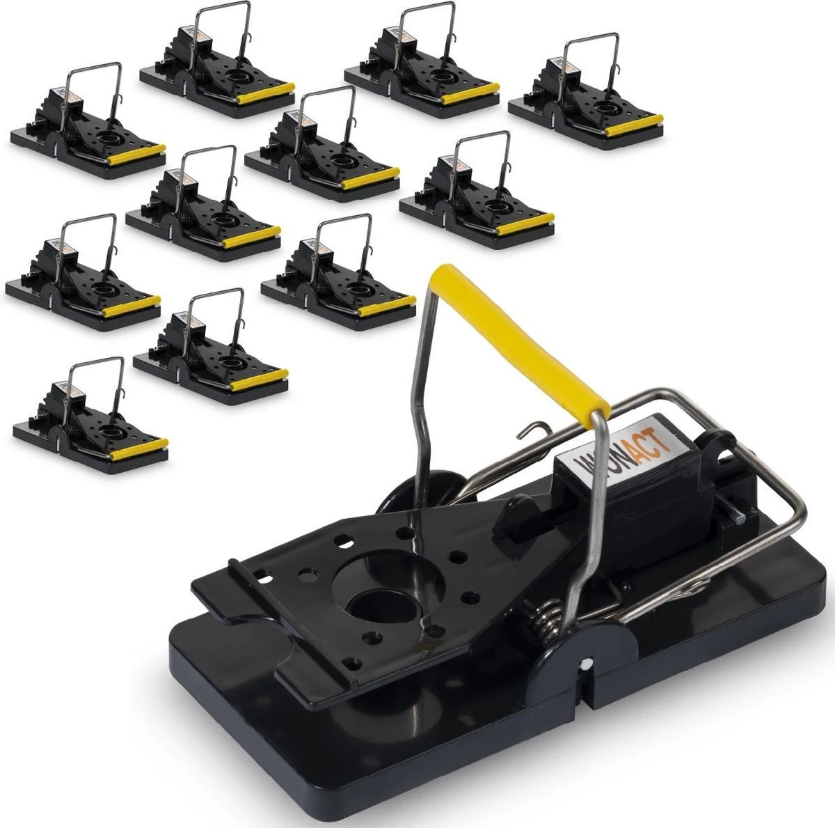 Deze set bevat 12 muizenvallen met een 100% pakkans. De vallen hebben een simpel ontwerp en lijken op de traditionele muizenval. Echter heeft deze val een moderne upgrade, wat je terugziet in het stevige materiaal en ongekend gevoelige triggerplateau. De val klapt krachtig dicht, waardoor gevangen ongedierte met geen mogelijkheid meer loskomt. Deze muizenval is de beste koop wanneer je snel en efficiënt ongedierte wilt bestrijden.
